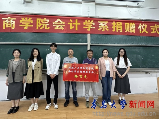 新闻网讯 5月23日下午,我校农工党党员、会计学系教师刘殿广奖学金捐赠仪式在金家岭校区西院1号教学楼111教室举行。商学院党委书记王功勇、会计学系主任范英杰参加仪式。会计学系全体辅导员和学生代表共200余人参加捐赠仪式。仪式由会计学系团总支书记陈鑫主持。