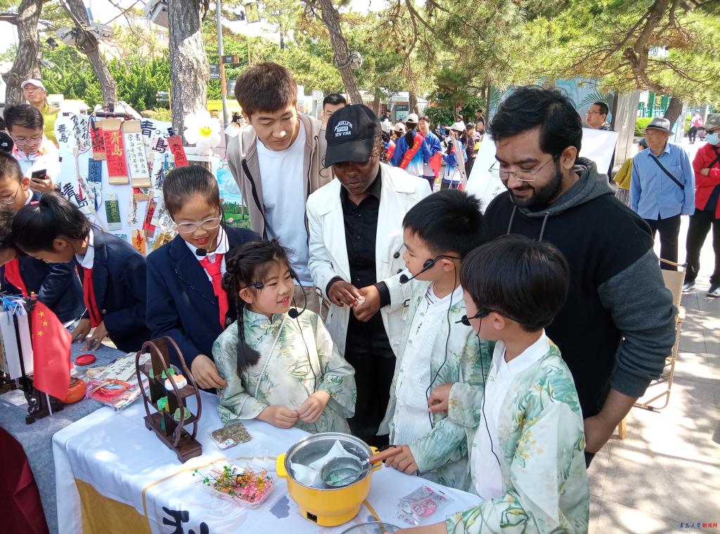 此次活动整合大思政课堂、社会公益实践服务和教育对外交流元素,凝聚大中小全学段、校家社协同育人合力,通过沉浸式外语实践、互动式文化体验、公益志愿服务等形式,讲好中国故事,传播中华优秀传统文化,打造出兼具本土特色与国际视野的市南教育新样态。我校“青洋益彩” 留学生志愿服务团的首次登场,也为活动增添了国际交流的亮色,彰显了学校推动多元文化交融的积极探索。