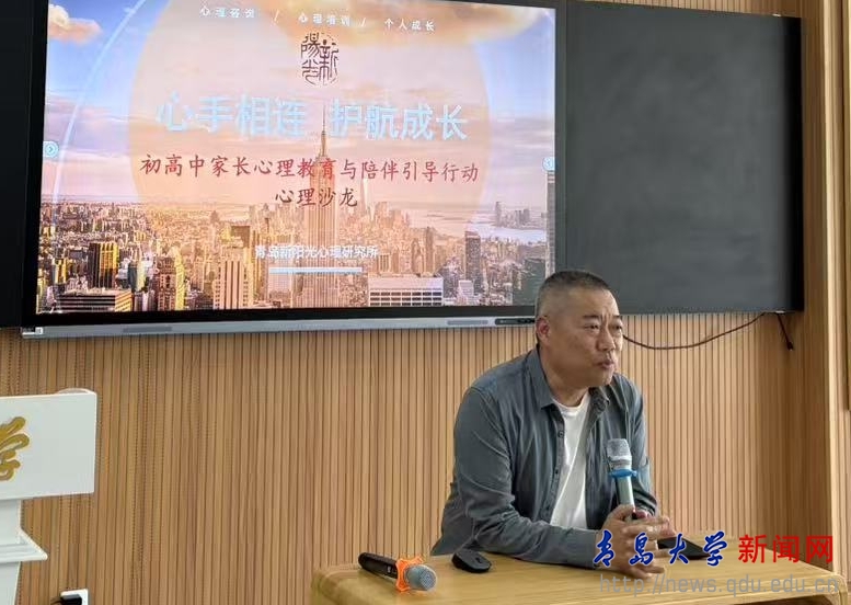 新闻网讯 5月21日下午,由校工会、妇委会主办的“心手相牵,护航成长——初高中家长心理教育与陪伴引导行动”心理沙龙在浮山书院大音堂(文化艺术楼C座306室)顺利举行。活动由校工会副主席戚昕主持,特邀青岛市心理咨询师协会秘书长、资深心理专家李克富教授担任主讲,我校线上线下共百余位教工参加了活动。