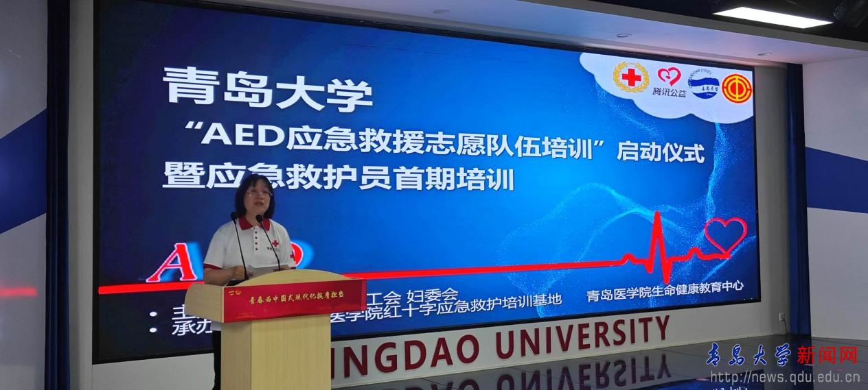 新闻网讯 5月29日,我校“AED应急救援志愿队伍培训”启动仪式暨应急救护员首期培训班在大学生科创文化中心205多功能厅举行。青岛市慈明慈善基金会、青岛市红十字会、崂山区红十字会、青岛医学院红十字应急救护培训基地、生命健康教育中心、校工会有关工作人员,以及全校各分工会推荐的“AED培训种子骨干”参加了仪式。