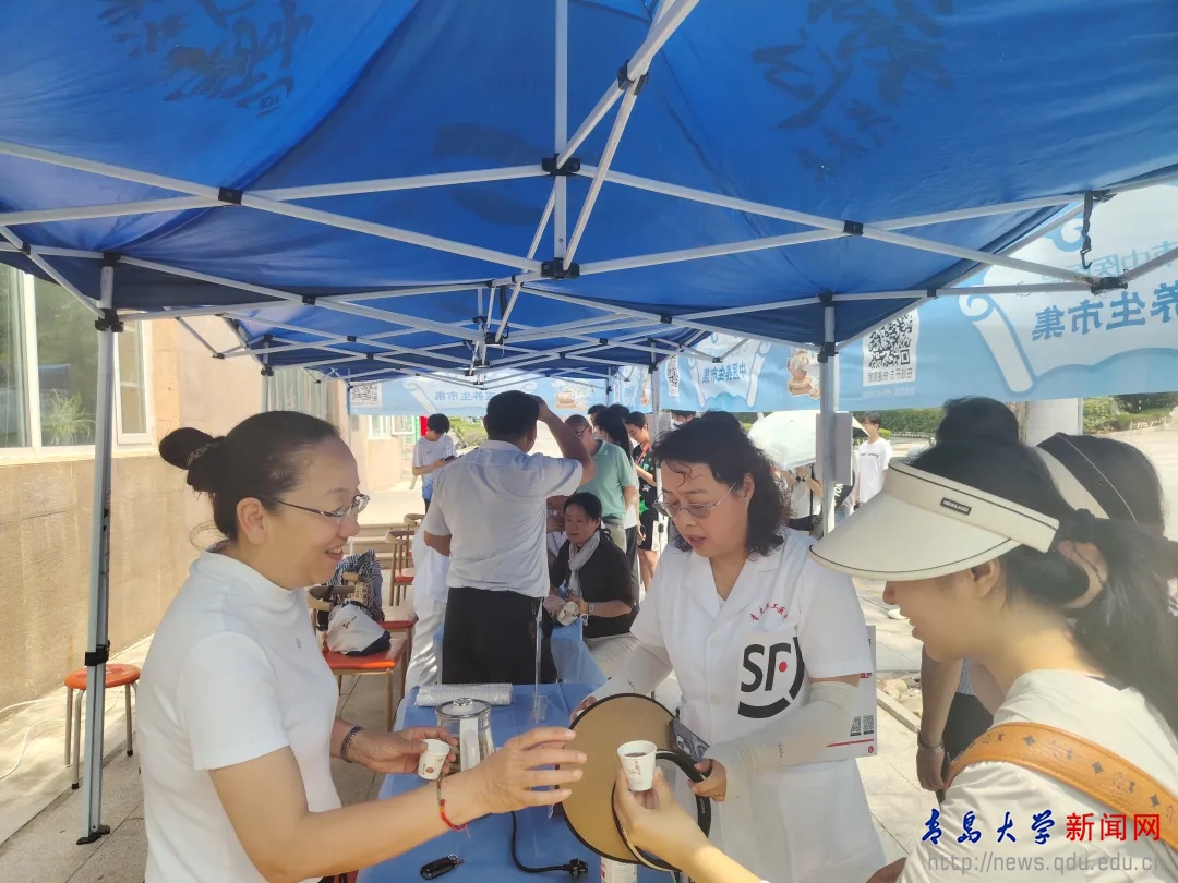 新闻网讯 6月7日,一场别开生面的“养生局”在我校浮山校区火热开市。本次活动由学校离退休工作处和校医院携手推动,邀请青岛市中医医院专家团队带来的中医养生市集,不仅成为师生特别是青年学子们竞相打卡的健康盛宴,更在主办单位的精心组织下,编织起一座连通杏林智慧与青春活力的代际桥梁。