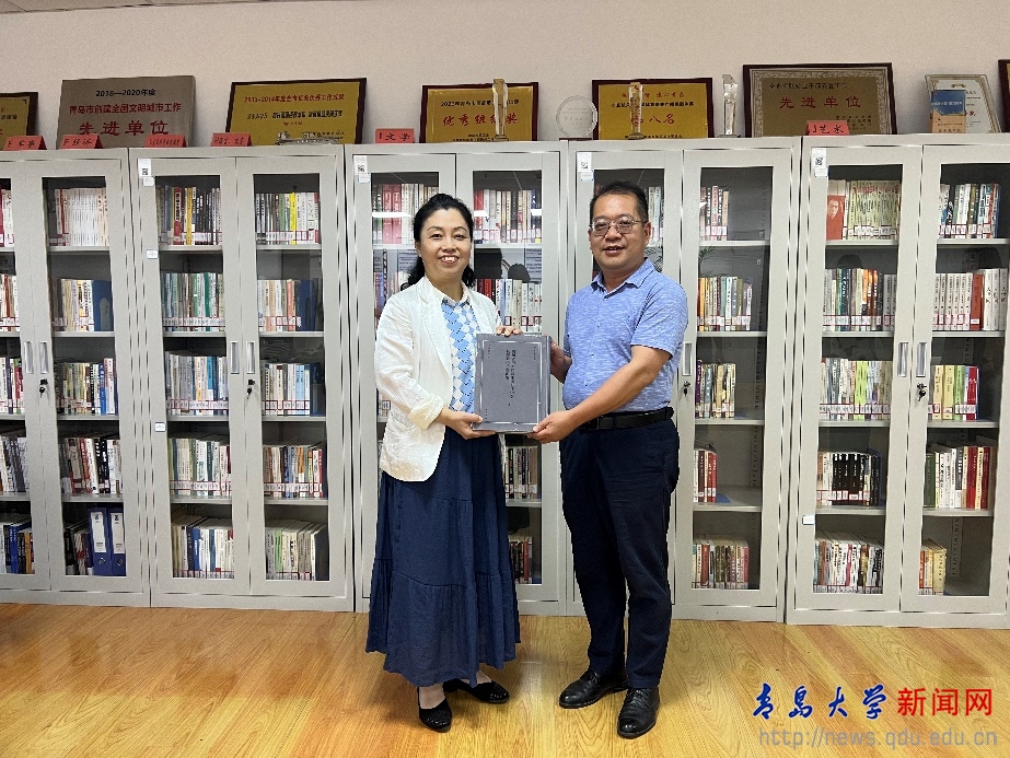 张英菊代表青岛市档案局向学校档案馆捐赠档案书籍23册,这是该处自与我校档案馆共建以来第三次向学校提供专业书籍。