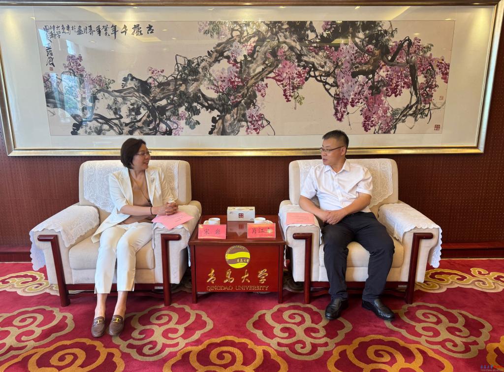 新闻网讯 6月12日下午,致公党青岛市委会专职副主委宋岩一行来校调研交流,校党委副书记肖江南在办公楼接待室会见并座谈。