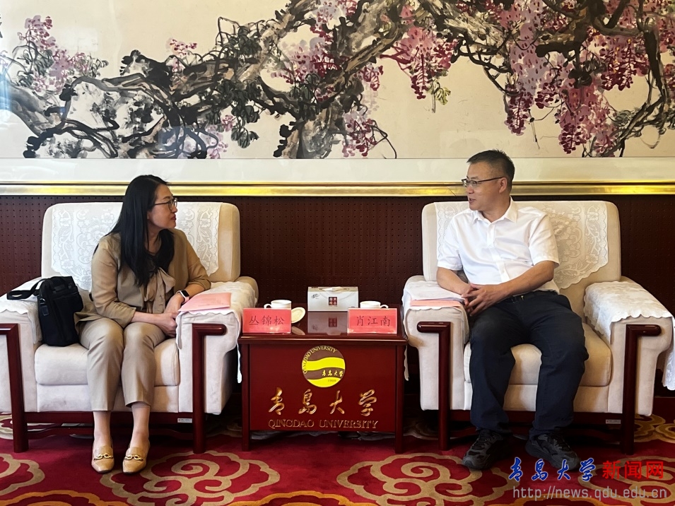 新闻网讯 6月24日上午,民盟青岛市委会专职副主委丛锦松一行来校调研交流,校党委副书记肖江南在办公楼接待室会见并座谈。
