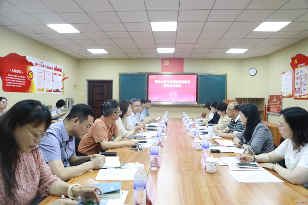 新闻网讯 6月27日下午,我校与青岛市市南区基础教育战略合作会议在山东青大教育集团会议室召开。市南区委教育工委常务副书记、区教育体育局党组书记、局长管学军,区教育和体育局党组成员、副局长徐菲,区教育研究中心主任刁丽霞,我校合作发展处处长王海荣,山东青大教育集团理事长、青岛师范学院副院长张贞齐,基础教育研究院院长马勇军参加会议。