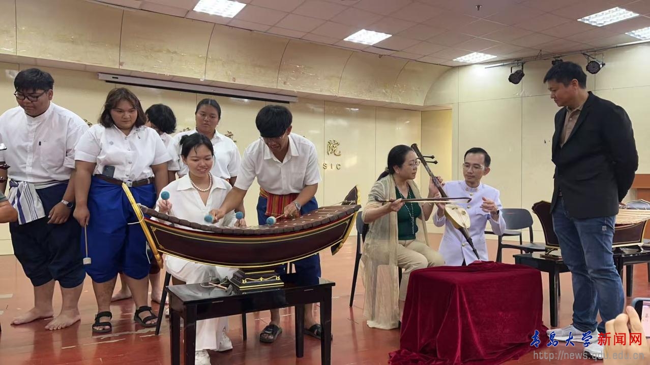 6月25日,泰国艺术大学师生在我校艺术学院排练厅带来了一场泰国传统乐器展示与演奏会。精彩演绎了极具泰国文化特色的作品,其独特的音乐风格激发了艺术学院师生的浓厚兴趣。我校师生踊跃尝试演奏泰国传统乐器,艺术交流渐入佳境。
