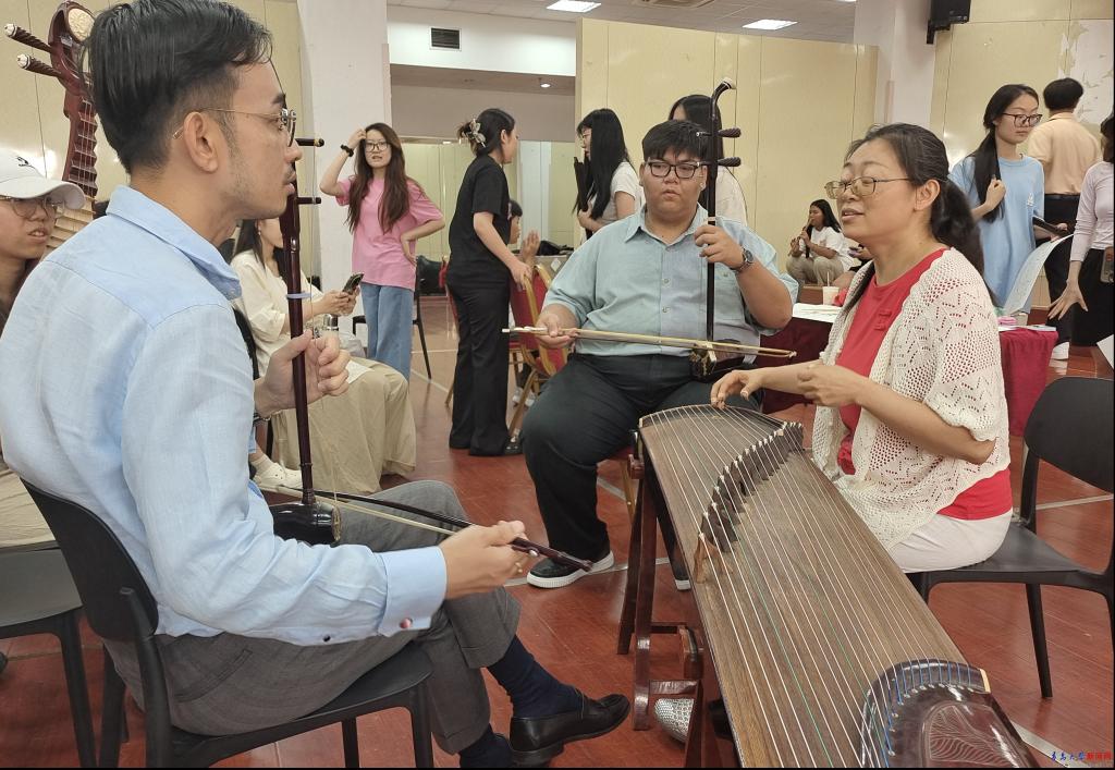 6月26日,中泰艺术工作坊精彩纷呈。泰国师生展示了泰国绘传统音乐与绘画艺术的独特风采。泰乐悠扬的旋律、迷人的音色以及所蕴含的深厚文化底蕴让在场师生深切感受到了其独特魅力。我校艺术学院师生展示了中国传统乐器二胡的演奏技巧。中泰乐器在音色与形制上交融对话,中泰绘画在色彩与技法上的碰撞渲染,生动展现中泰艺术互通互动。