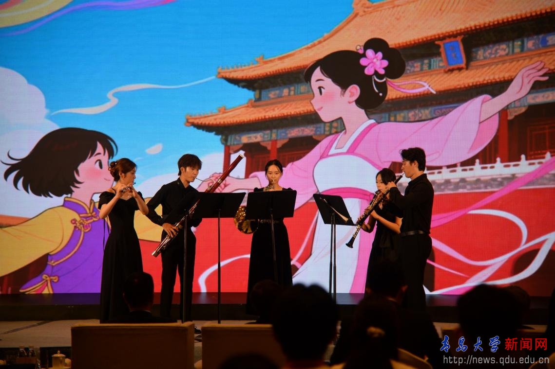 本次夏令营是“2025中日韩(友城)青少年交流月”重要活动之一,校党委常委、副校长何燕出席了7月11日晚在海景花园大酒店举行的2025中日韩(友城)青少年交流月启动仪式暨夏令营开营仪式,并与青岛市政协副主席崔作、中日韩合作秘书处秘书长李熙燮、日本驻青总领事斋藤宪二、韩国驻青副总领事崔康锡、市委外办主任范奇志共同上台点亮仪式。我校政治与公共管理学院和艺术学院学生还呈现了独具特色的精彩表演。政治与公共管理学院和外语学院相关师生20余人参加了夏令营。