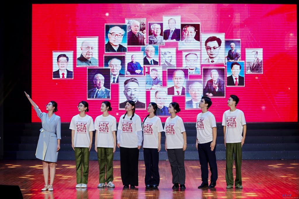 中国工程院院士邱爱慈作专题辅导,中核集团总经济师、总审计师黄敏刚,团中央青年志愿者行动指导中心党委副书记、主任赵博,浙江大学党委副书记朱慧出席活动并讲话,华东区50余所高校大学生志愿宣讲团队代表在现场感受“两弹一星”精神的时代力量。《星火永怀》以青大附中杰出校友、“两弹一星”元勋郭永怀先生的人生历程为主线,对郭永怀先生“以身许国、勇攀高峰”的感人事迹和精神内核进行了深情演绎与精准诠释。《星火永怀》以四幕内容,生动还原了郭永怀先生从毅然归国到以身报国的事迹,每一个情节都藏着“两弹一星”先辈的赤诚与坚守。