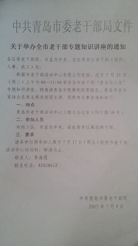 转发通知:关于举办全市老干部专题知识讲座的通知