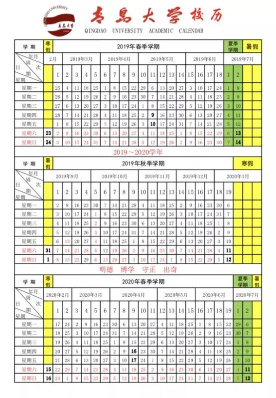4. 2020年清明节、劳动节和端午节的放假时间以学校发布的通知为准。